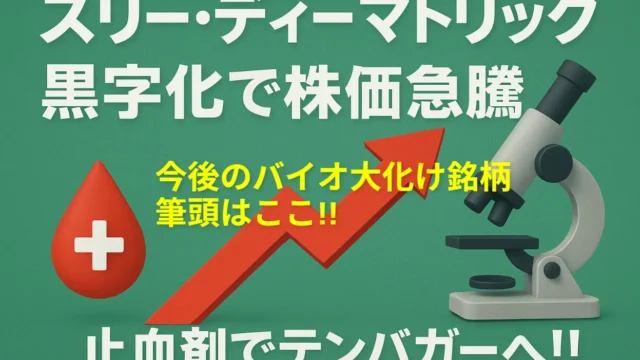 スリー・ディー・マトリックス(3Dマトリックス)はMIT発の自己組織化ペプチド技術を基盤に、止血材PuraStatを世界展開する医療ベンチャー。赤字ながら株価上昇を続ける理由や注目パイプライン、黒字化の目途を詳しく解説。テンバガー候補としての将来性を投資家目線で深掘りします。