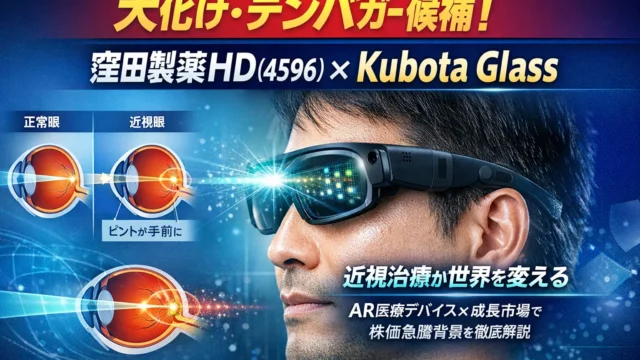 窪田製薬ホールディングス(4596)の株価が急騰。赤字縮小見通しを受けて再評価の動きが強まっています。近視治療デバイス「Kubota Glass」や網膜疾患治療薬エミクススタトなど主力パイプラインの進捗は?世界的に拡大する近視市場を背景に、収益化の可能性と今後の開発・承認スケジュールを整理。株価爆上げの理由、将来性、テンバガー候補としての投資視点を徹底解説します。