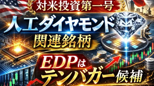 対米投資第一号案件として注目される人工ダイヤモンド分野。本記事では、AI・データセンター需要の拡大や半導体の発熱問題を背景に、次世代素材として期待される人工ダイヤに関連する日本株を徹底解説。中でもテンバガー候補として注目されるEDPを中心に、関連銘柄の特徴や今後の成長シナリオをわかりやすく紹介します。国策テーマとしての魅力と投資チャンスを見極めたい方は必見です。