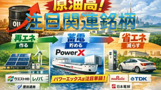 中東情勢の緊迫化を背景に原油価格が急騰し、エネルギー市場に大きな影響が広がっています。WTI原油先物は一時120ドルに迫る場面もあり、日本のように中東依存度の高い国ではエネルギー安全保障の重要性が改めて意識されています。こうした環境の中で、太陽光や風力、地熱などの再生可能エネルギー関連株、そして電力需給のカギを握る蓄電池関連銘柄に投資資金が向かう動きが強まっています。本記事では、ウエストホールディングス、ABalance、テスホールディングス、レノバ、豊田通商、戸田建設、富士電機、菱島製作所といった再エネ関連企業に加え、急成長が期待されるパワーエックスを中心とした蓄電池関連銘柄、省エネスマートメーターのインフォメティスまで、原油高局面で注目したい企業をわかりやすく解説します。エネルギー転換が進む中での投資テーマを整理したい方はぜひ参考にしてください。