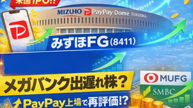 日本のメガバンクの一角、みずほフィナンシャルグループ(8411)を徹底分析。これまで株価上昇が目立つ三菱UFJフィナンシャル・グループや三井住友フィナンシャルグループと比較しながら、メガバンクの中での出遅れ感や投資妙味を解説します。さらに注目されているのが、決済アプリPayPayの米国IPO観測です。報道では米ナスダック上場や最大2兆円規模の企業価値とも言われ、市場の関心が高まっています。福岡ソフトバンクホークスの本拠地「みずほPayPayドーム」からも分かるように、みずほとPayPayの関係性は深く、フィンテック分野の成長が株価に与える影響にも注目が集まります。本記事では、みずほFGの企業情報、直近ニュース、株価指標(PER・PBR・配当利回り)に加え、メガバンク3行比較を通じて投資価値をわかりやすく解説します。