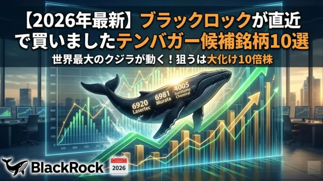 【2026年最新】世界最大の資産運用会社ブラックロック(BlackRock)が直近で買い増した日本株10選を公開!バフェット・コードの最新保有履歴を分析し、2026年に入ってからクジラが動いた「テンバガー候補」を厳選しました。レーザーテックや村田製作所など、半導体・高機能材料セクターを中心に、プロが中長期的な成長を確信してアクセルを踏んだ銘柄とは?「世界一の投資家」の背中に乗る戦略は、個人投資家が勝ち抜くための近道です。過去記事のブラックロック解説と併せて、最新の投資戦略をブログで徹底解説。あなたのポートフォリオを強化するヒントがここにあります!投資判断の参考にぜひ。