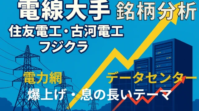 日米株電線メーカー大化け!住友電工・古河電工・フジクラが熱い理由と国産レドックスフロー電池の破壊力 電線大手の住友電気工業・古河電気工業・フジクラの業績・強み・将来性を徹底比較。EV・再エネ・データセンター需要を背景に電線事業が再注目される理由を深掘り。各社のPER・PBR・ROE・配当率・時価総額・割安度比較も一覧で整理し、特に注目の「住友電工の国産レドックスフロー電池」について詳しく解説する投資家必見の分析記事。 2025.11.22日米株
