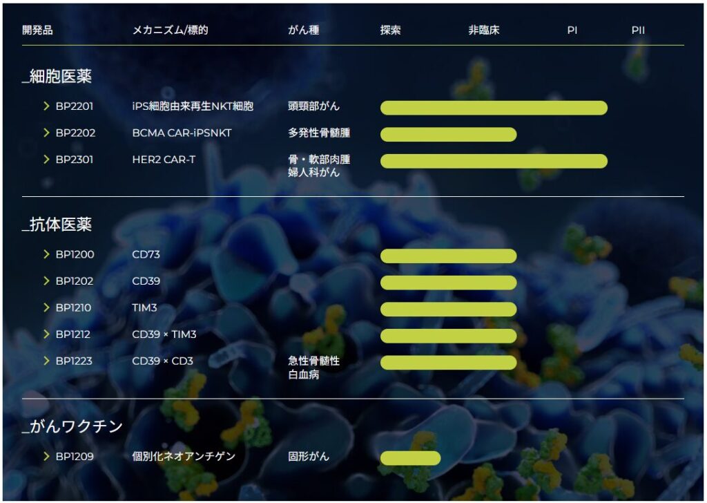 | BP2202(BCMA CAR‑iPSNKT) | 多発性骨髄腫 | 治験薬製造が最終試作段階、2026年3月に米国治験申請予定 |