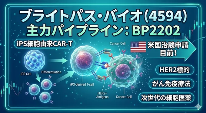 バイオ株の物色が再び強まる中、がん免疫治療の最前線を走るブライトパス・バイオ(4594)がじわじわと存在感を高めています。