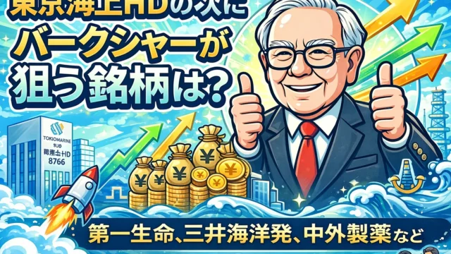 ウォーレン・バフェット率いるバークシャー・ハサウェイが東京海上ホールディングス(8766)と戦略的資本提携!この衝撃ニュースを受け、筆者は配当権利日に東京海上を大量買い。なぜバフェット氏は日本の損保王を選んだのか?5大商社の保有比率を最大10.8%まで引き上げた「日本株買い占め」の真意と、次に白羽の矢が立つ銘柄を徹底予測します。第一生命、三井海洋開発、中外製薬、日本製鉄、三菱重工など、バフェット流の「堀(Moat)」を持つ有力候補をブログ独自の視点で分析。低PBR是正、円建て社債による資金調達、株主還元強化といった日本市場の変革期に、個人投資家が狙うべきお宝銘柄とは?「tomblog」が送る、2026年最新のバフェット銘柄選定術。東京海上の提携を予見した分析力で、次なる投資チャンスを掘り下げます。権利落ち後の戦略や長期保有のメリットもあわせて解説!