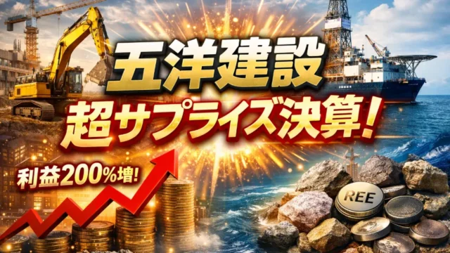 日米株【2026年最新版】五洋建設決算発表営業利益200%増のサプライズ決算!上方修正&大幅増配で株価はテンバガーへ向かう 五洋建設が2026年3月期第3四半期決算で営業利益200%増・純利益217%増の驚異的な成長を発表。通期業績予想も大幅上方修正され、年間配当は44円へ増配。国内土木・建築が絶好調、海外は来期黒字転換見込み。南鳥島レアアース思惑も再燃し、株価は中期的に強気展開か。 2025.11.23 2026.02.09日米株