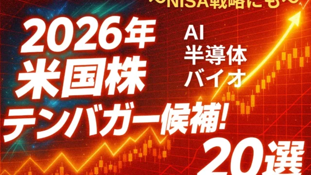 日米株2026年米国株テンバガー候補大化け期待20選【AI・半導体・バイオの波に乗る】 2026年の米国株で10倍成長が狙えるテンバガー候補20銘柄を厳選。AI・半導体・バイオ・宇宙など巨大市場の中心にいる成長企業を、過去のテンバガー事例と共に徹底分析。SMCI、Palantir、AMD、Snowflakeなど来年の有望株を総まとめ。NISA戦略に役立つ保存版ガイドです。 2025.11.19日米株
