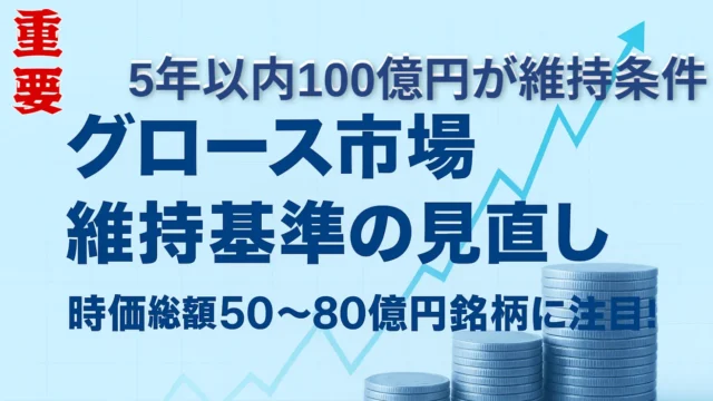 日米株グロース市場維持基準見直しの衝撃と小型グロース株への期待 狙い目の時価総額50~80億円台10銘柄 グロース市場の上場維持基準が「上場5年後に時価総額100億円以上」へと厳格化。この記事では改革の背景と投資家への影響を解説し、今注目すべき時価総額50~80億円の成長銘柄を10社厳選。黒字かつ高ROEの有望株を分析し、株価上昇の可能性を探ります。 2025.09.27 2025.10.09日米株