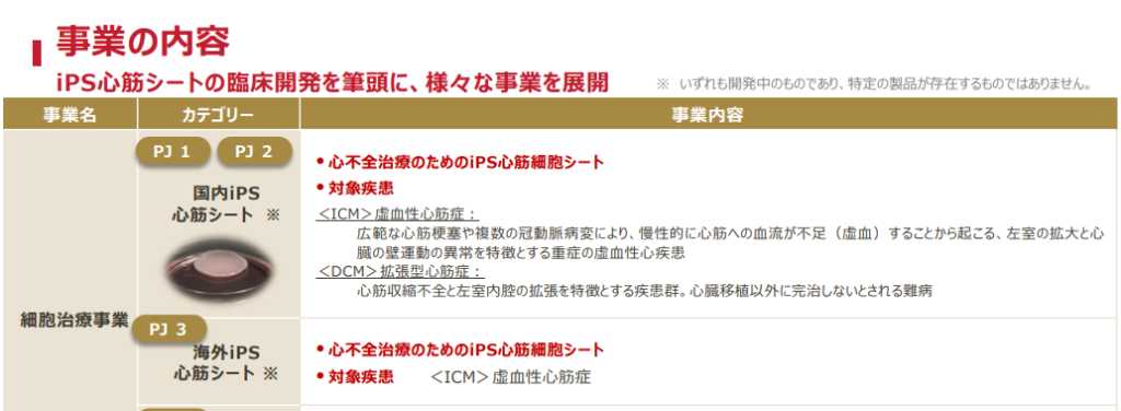 再生医療の中でも“心臓”という巨大市場を狙っている点が特徴です。