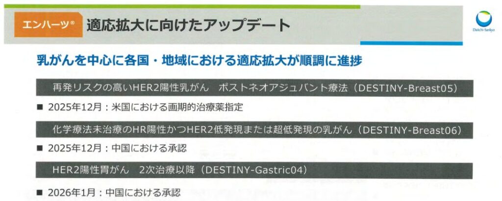 と、それぞれ強みはあるものの、世界市場で“複数の大型新薬を同時に承認ラインへ乗せている”企業は第一三共だけ。
