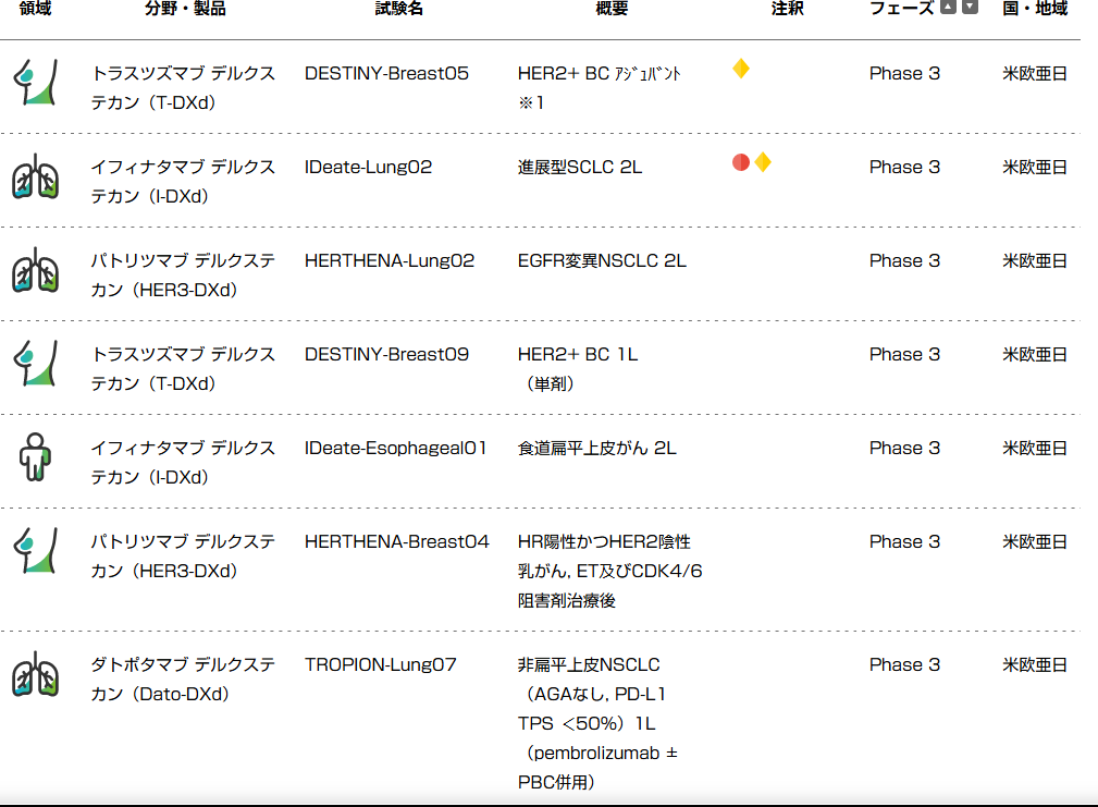 第一三共は T-DXd(エンハーツ)を筆頭に、Dato-DXd、HER3-DXd、I-DXd と、
