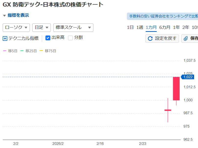 - 銘柄名:Global X 防衛テック-日本株式 ETF