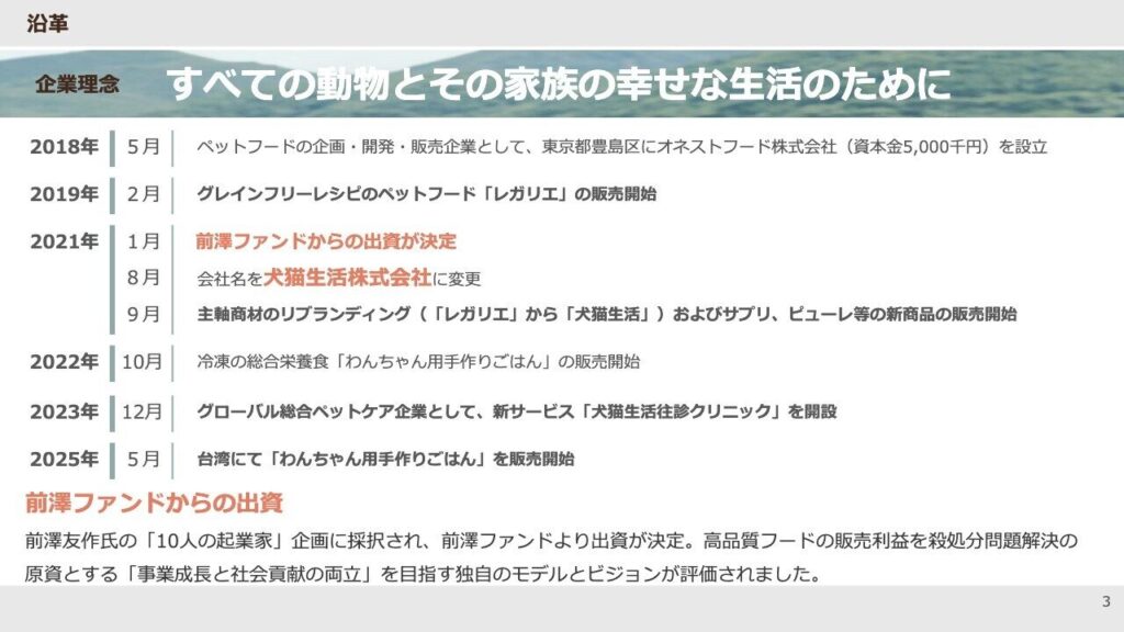 驚くべきは、営業利益の20%を「犬猫生活福祉財団」に寄付し、殺処分ゼロに向けたシェルター運営などに充てている点です。一見、投資家からは「利益を削っている」と見られがちですが、実はこれが強力な「ブランド・バリア」になっています。