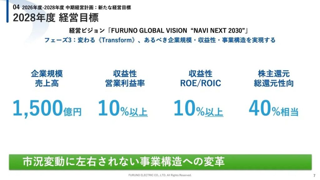 古野電気(6814)を総括すると、以下の4つの熱いポイントに集約されます。