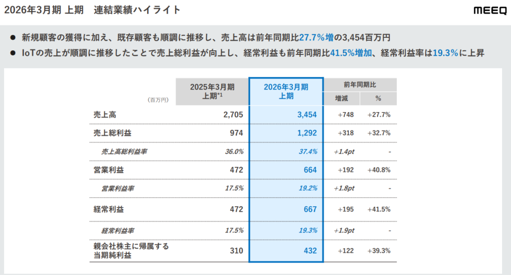 IoT/DXプラットフォーム事業が想定を上回るペースで拡大しており、成長株としての信頼感を高めています。特に営業利益率が向上している点は、プラットフォームとしての効率性が上がっている証拠と言えますね。