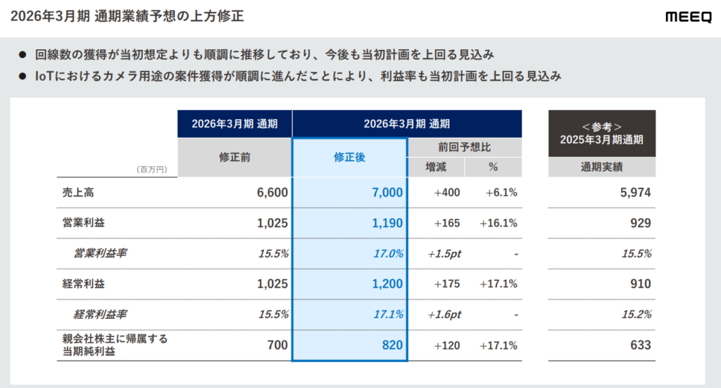直近のニュースで特筆すべきは、2026年3月期の中間決算(2025年11月発表)で見せた上方修正です。