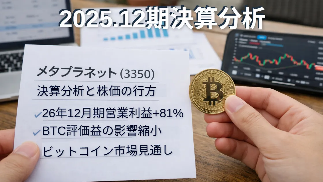 株価は2024年〜2025年にかけて大きく下落し、個人投資家の心理は冷え込んだまま。今回の記事では、冷静な決算分析と、2026年12月期の強気な業績予想(営業利益+81%)、そしてビットコイン市況を踏まえ、今後の株価がどこまで戻るのかを深掘りしていきます。