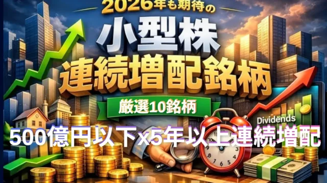 日米株2026年のお宝株!時価総額500億円以下×5年以上連続増配の厳選10銘柄 2026年も期待したい小型株の連続増配銘柄を厳選紹介。時価総額500億円以下で5年以上増配を続ける注目企業10社をピックアップしました。配当成長の魅力や小型株ならではの投資妙味、長期保有で狙いたいポイントをわかりやすく解説。インカムと成長の両取りを目指す投資家必見の内容です。 2025.12.30 2026.01.03日米株