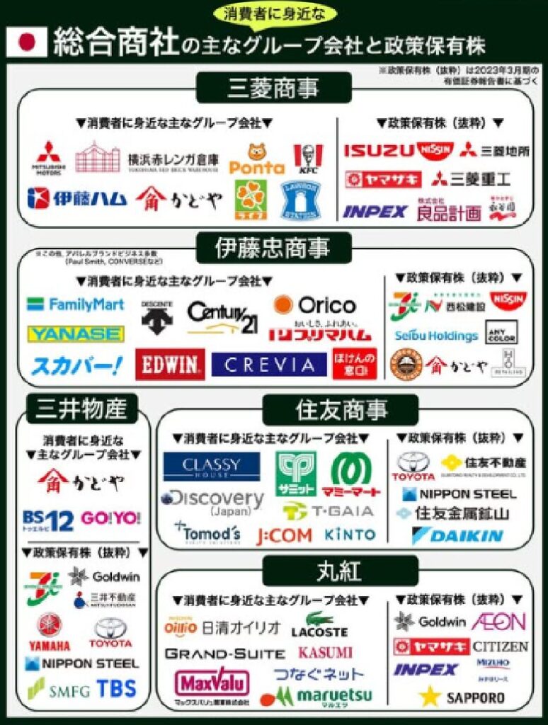 | 伊藤忠商事 | 非資源分野、特に生活関連・小売・繊維・サービス領域に強みがあり、消費者視点で成長戦略を描くことが特徴です。 |