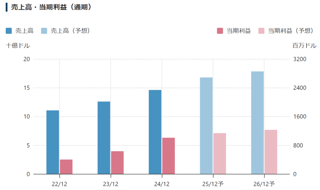 - 売上高:約150億ドル(前年比+13%)