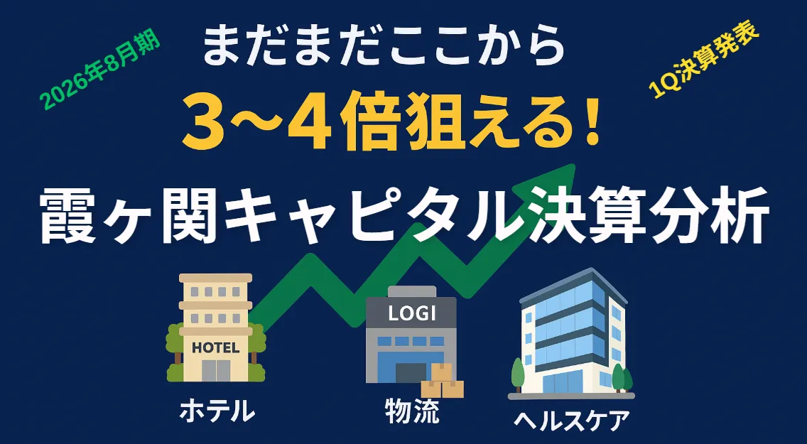 さらに次期中計では「AUM(運用資産残高)を1兆円規模に拡大」する方針が示されています。ホテルREIT、物流ファンド、ヘルスケア施設運営を積み上げることで、霞ヶ関キャピタルは「不動産総合アセットマネジメント会社」としての地位を確立しようとしています。