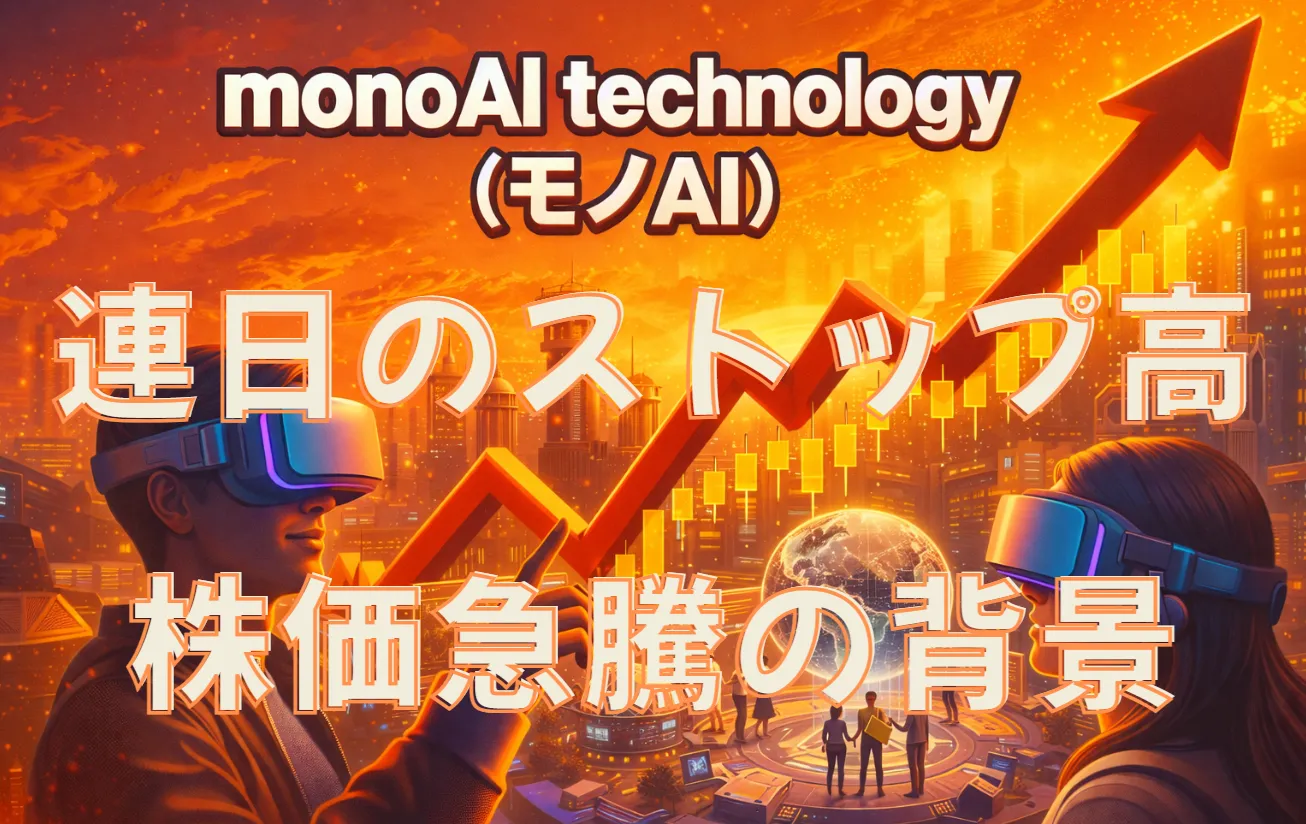 2025年12月16日、monoAI technology(証券コード:5240)がストップ高を記録し、個人投資家の間で話題となっています。材料は明確に開示されていないものの、メタバース関連のテーマ性や直近の赤字縮小決算が好感された可能性があります。時価総額は約28.9億円と小型で、値動きの軽さも相まって注目度が急上昇。SNSや掲示板でも「この会社、何してるの?」という声が多く、今こそその魅力を深掘りするタイミングです。