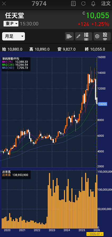 にもかかわらず株価は月足で大きく調整し、10,000円前後という“歴史的な押し目ゾーン”に突入。