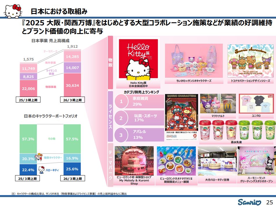 近年はブランド力を武器に国内外でライセンス収益拡大とテーマパーク集客の底上げを進行しており、ブランドIPの強さが収益に結びついています。