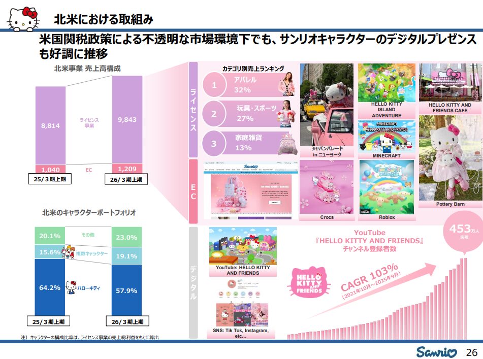 アジア、北米など海外ライセンスビジネスの伸長が報告されているため、グローバル売上増加余地が大きい構造です。