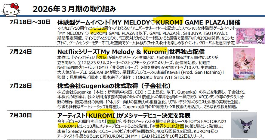 「『クロミ』『マイメロディ』をはじめとするキャラクター人気の高まりが奏功」