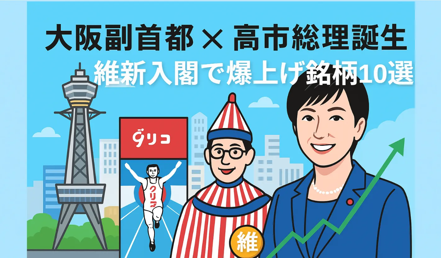 高市政権×維新連携が実現すれば、関西を中心とした再開発テーマ株が市場の主役になる可能性があります。副首都関連銘柄群は、中期的に2倍~5倍高の余地も視野に入ります。
