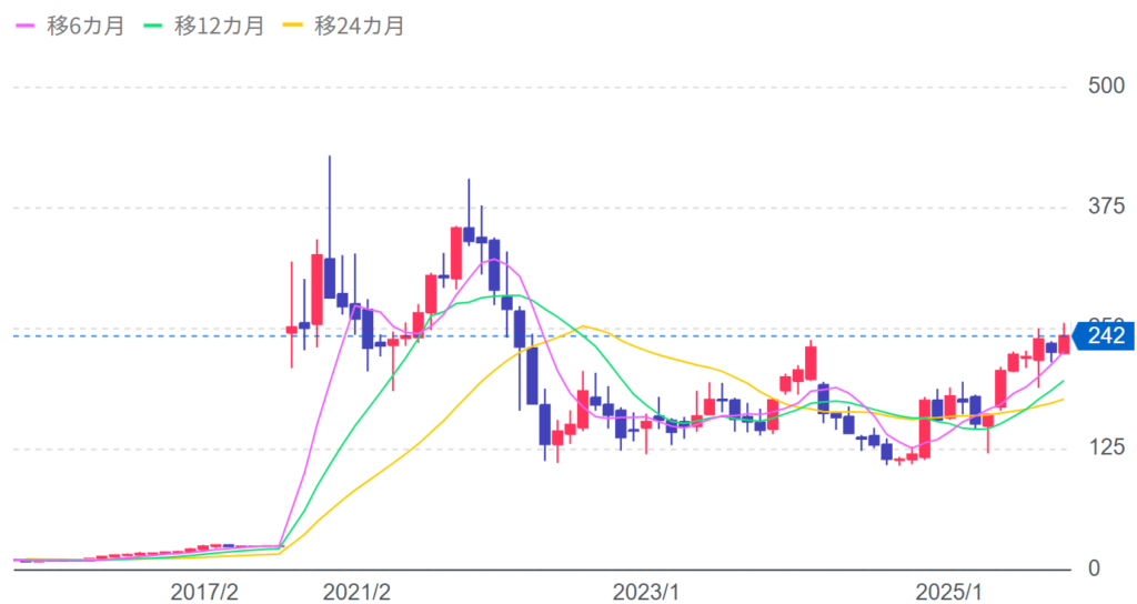 株価は一時低迷したが、2025年に入って再び上昇トレンドに転じつつあり、SNSでも「AI×クラウドの本命」「次のテンバガー候補」といった声が増えている。
