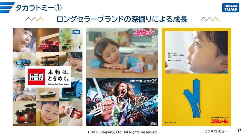 - 代表的なIP(知的財産): トミカ、プラレール、リカちゃん、デュエル・マスターズ、ベイブレード、トランスフォーマーなど。